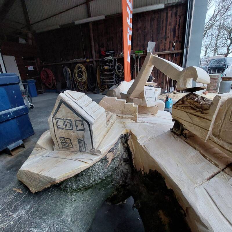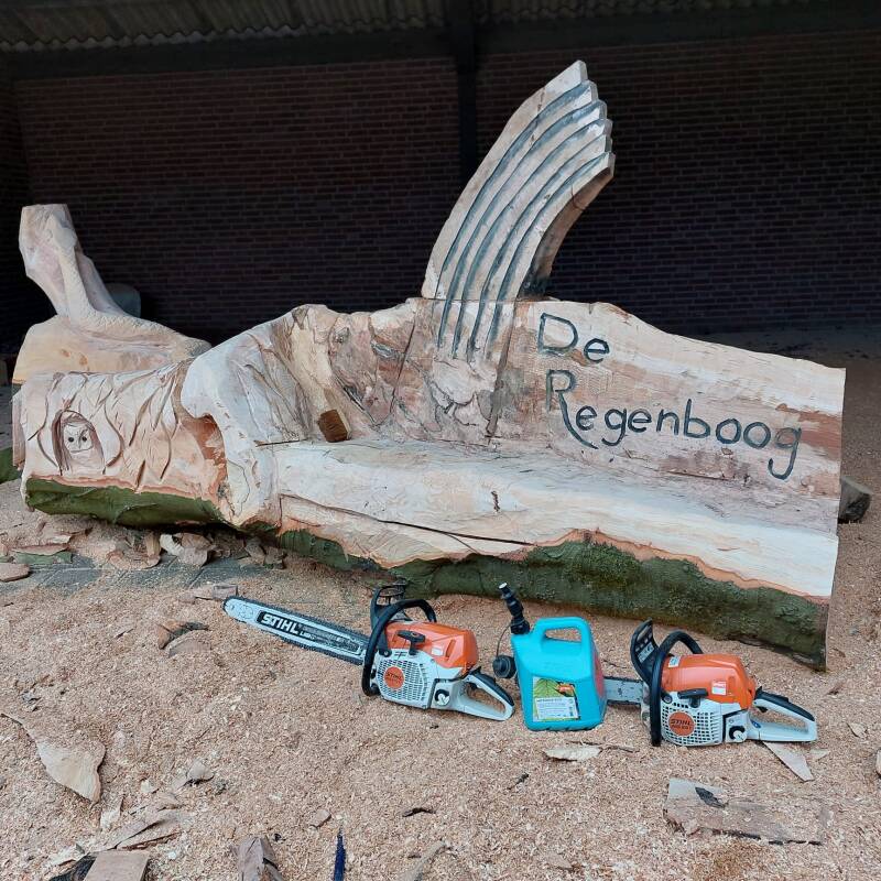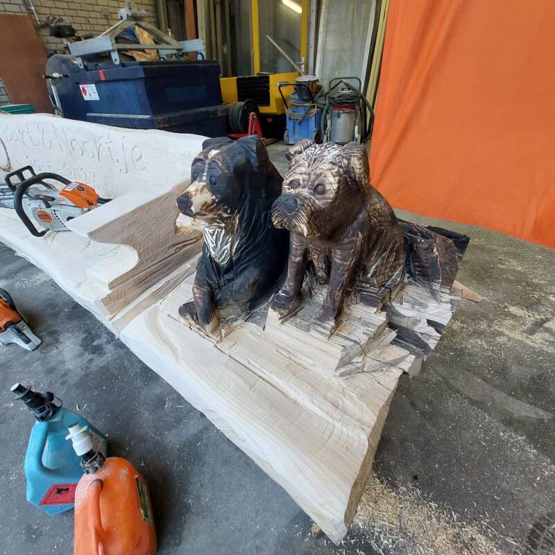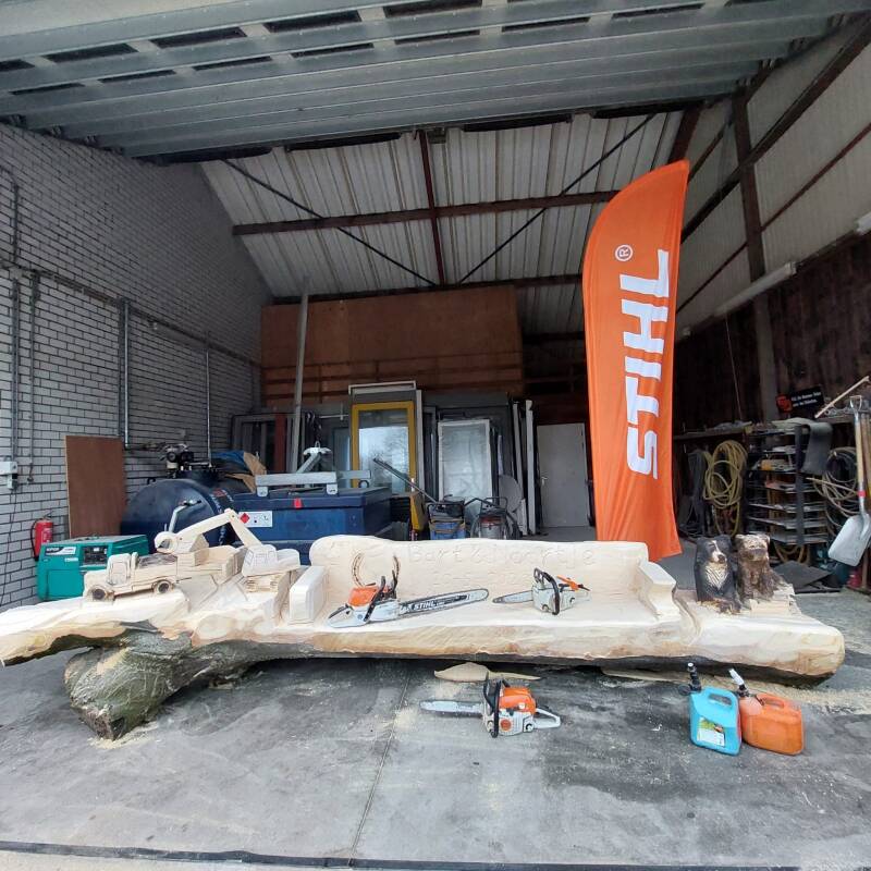 Eerst voor een jong stel dat in het voorjaar gaat trouwen. Zij wilden graag een bank uit een boomstam gezaagd hebben als herinnering aan de trouwdag.