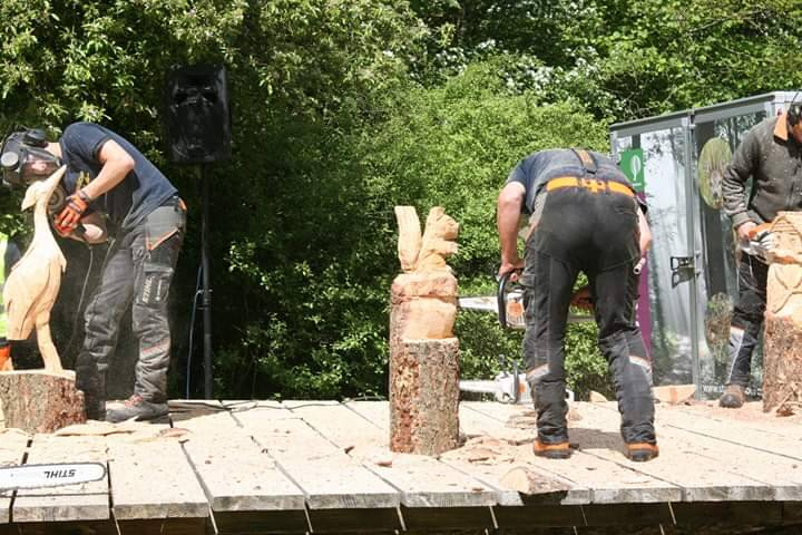 Op 4 en 5 mei vond de traditionele Carvingcup weer plaats in het Drentse Drouwen. Hier komen één keer per jaar 25 carvers bij elkaar om in twee dagen een beeld te maken. Het te maken beeld wat gemaakt wordt is helemaal de vrije keus van de kunstenaar. Dit jaar heb ik gekozen om een gigantische draak te maken van ruim 2 meter hoog. Ook wordt er van de carvers gevraagd om mee te doen aan een "speedcarving" dan krijgen de kunstenaars 30 minuten de tijd om van een kleinere stam een beeld te maken. Dit is een echte sport. Snel je zaag hanteren, de lijnen laten komen zoals je ze hebt bedacht en daarbij ook nog tientallen lifts maken met een zaag van tussen vijf en tien kilo.