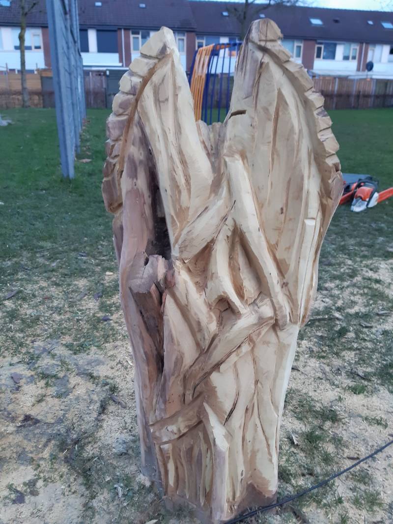 Bij een natuurspeeltuin bij mij in de buurt hebben betrokken buurtbewoners een voorstel bij de gemeente neergelegd om hier een stuik/speel perk aan te leggen. Om het nieuwe struikgewas te beschermen tegen overijverige grasmaaierbestuurders hebben vrijwilligers van een plan gemaakt. Wat als we een rij met boomstammen in de grond zetten en deze laten bewerken met fantasie motieven. Voor dit plan heeft de gemeente een budget beschikbaar gesteld om het te realiseren.