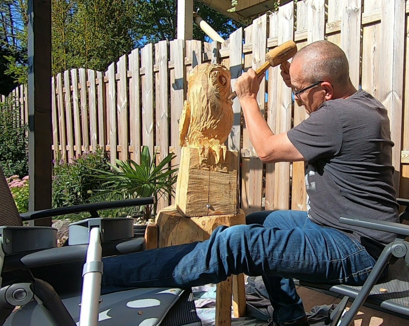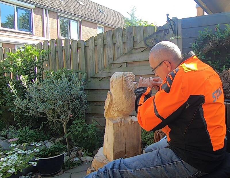 Het einddoel kan ver lijken en stilstaan bij de kleine stapjes vooruit dragen voor mij bij aan het vasthouden van een positieve mindset. Afleiding zoeken in tv kijken, Googlen naar alles wat maar mogelijk is en als het weer het toelaat naar buiten om toch even een uurtje met een beitel en een blok hout bezig te zijn.