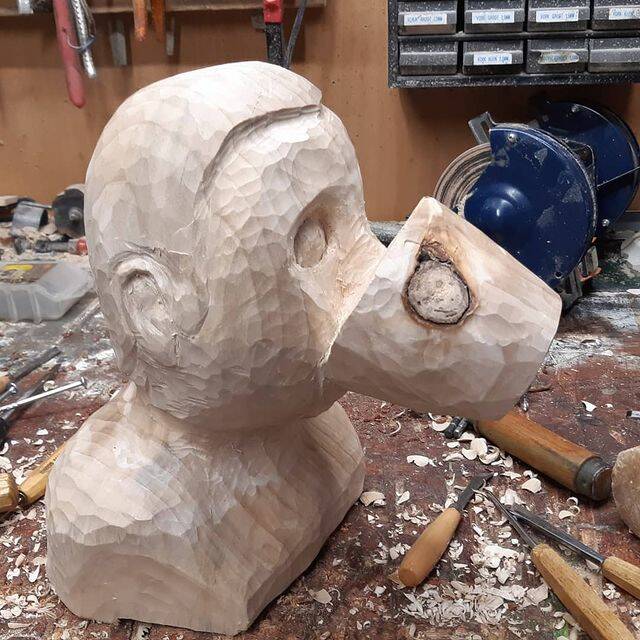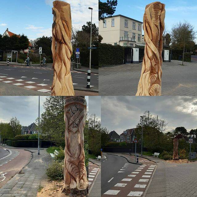 Later heb ik ook weer grotere opdrachten die zijn blijven liggen op gepakt. In Zandvoort heb ik het wapen van Zandvoort uit een zieke iepenboom gezaagd. Een flinke stam van drie meter hoog.