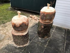Tijdens de storm in januari 2018 is er bij mijn achterbuurvrouw een grote boom omgewaaid. Op een zaterdag hebben we met vereende krachten de boom opgeruimd. En van een paar resterende blokken een leuk aandenken gemaakt.